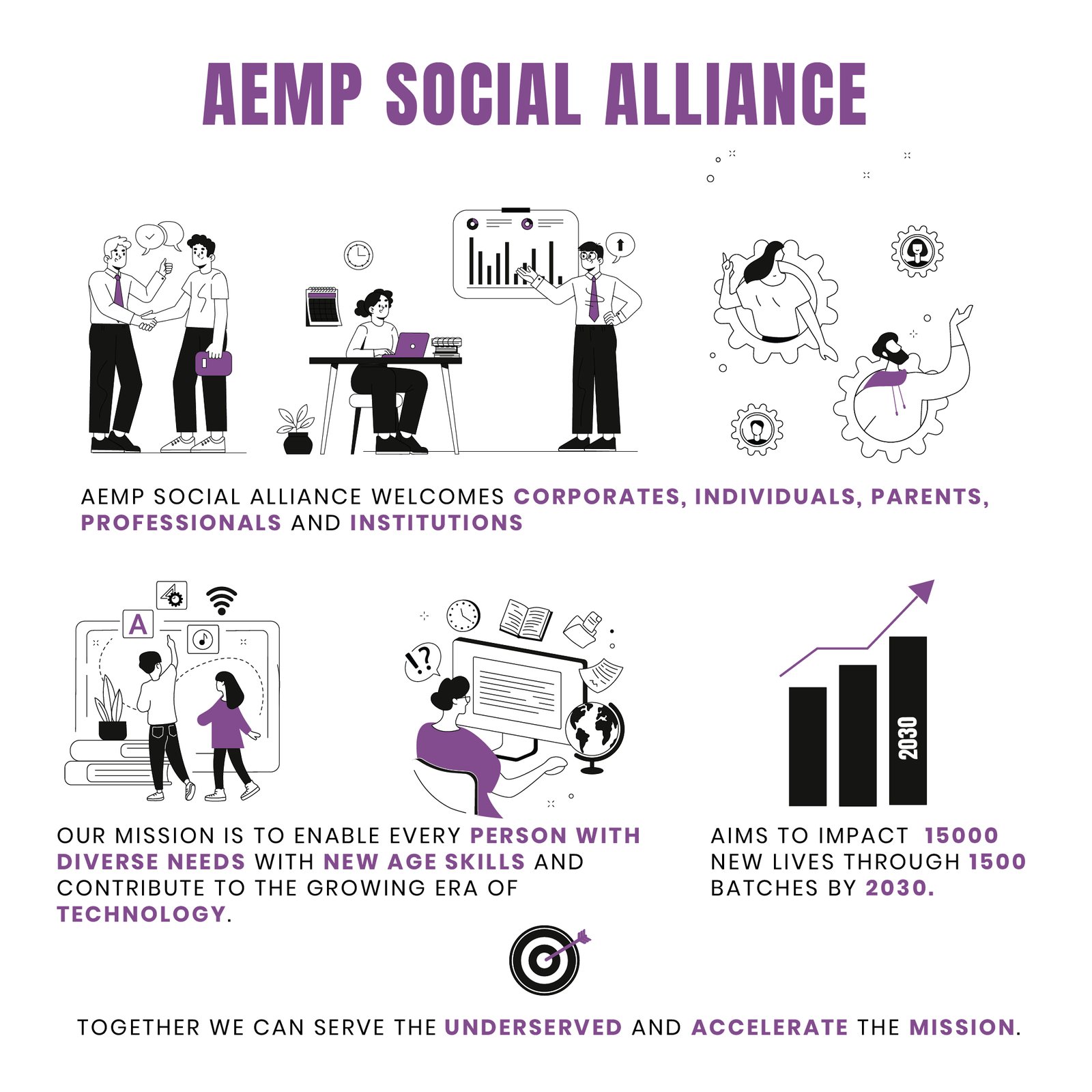 Through AEMP@Schools, we partner with schools/institutions working for Persons with Diverse Needs and provide them with AEMP at an economically viable cost to educate and empower the community at large. Our hybrid mode of training for institutions helps to reach high numbers of beneficiaries while utilizing minimum resources for a maximum impact. This mode of education not only trains the student but also cultivates multimedia skills for the coordinator of the batch from the school making them an effective resource for the after-course service. We also cultivate essential curriculum knowledge for the parent/guardian of the student so as to prepare a helping hand at home. We educated, involved, and empowered every stakeholder in this community to get distinguished and positive results.
